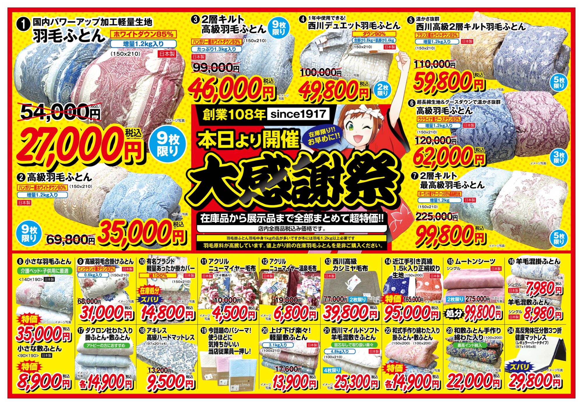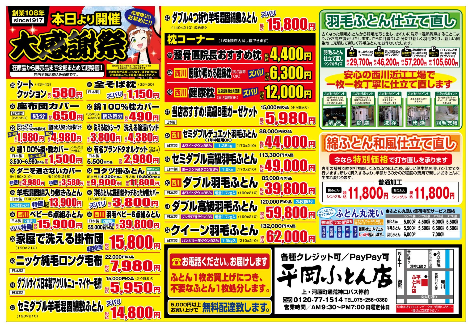 平岡ふとん店では、大感謝祭を開催中です。